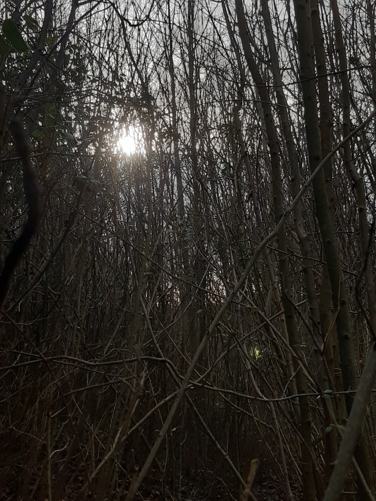 Today I did an organised walk, joining one of Walking The Land’s ‘First Friday’ walks, with an invitation to explore and respond to winter trees. We met virtually as a group to share ideas and thoughts, and state our intents for our walks, and then went our physical separate ways to, in a delightful phrase, ‘walk together alone’.