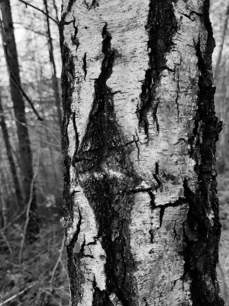 I could see the lines and hard lessons of new and painful truths, the shame of not being ‘normal’, of feeling alien in the castle of your own mind, peering out at the world as if there is a glass wall between you and everyone else. The knowing that you have sometimes been a burden and your husband has sometimes been your carer, and his continual and unrelenting supportiveness only serves to highlight your own inadequacy; that your children have had a washed out, dysfunctional mother, that this may damage them whether you wish it or no. Against the clean black and white of the birch bark, it is very hard to lie, even to yourself. I saw all these truths, and in the seeing realised I could only see them now, as this stage of deep healing has passed and I am now rebuilding, finding my way back to myself, learning to like all that sets me apart rather than feeling shame and separateness and fear.