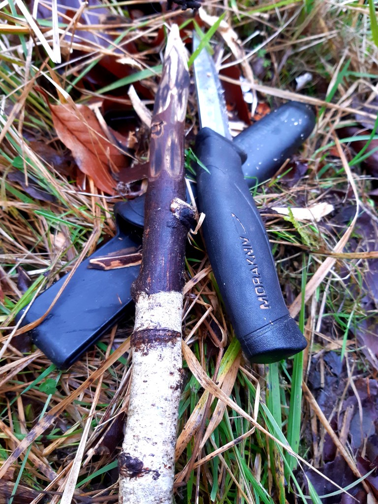 As I go, along a previously unexplored path I find a pleasantly sized birch stick. I remember I am carrying my knife, and I roughly and quickly fashion a spear. I feel… better. It comes to me that I am a woman alone in the woods with my dog and a spear I’ve made with my own hand, and I feel myself coming back to myself, in a place where my life has shaped me, like my knife has shaped my spear.