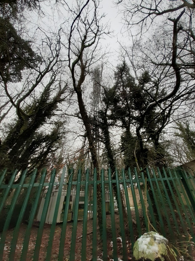Strangely, the transmitter had flickered from my mind as well as my view, until I and carried on, and then suddenly, to my left – ‘Oh! There you are!’ there it was, safe behind its government issue green spiked railings.