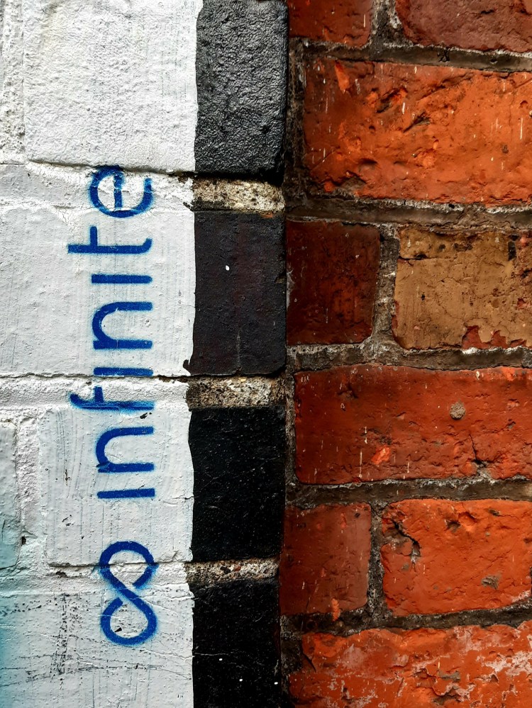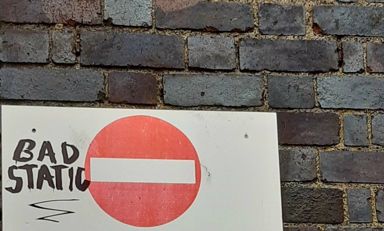 A series of graffitos and signage leapt out at me. ‘Infinite’, accompanied by the ancient side-lying figure of eight symbol. ‘Bad Static’, next to a ‘No Entry’ sign. Be Aware’, underneath a surveillance camera surveying the factory car park.