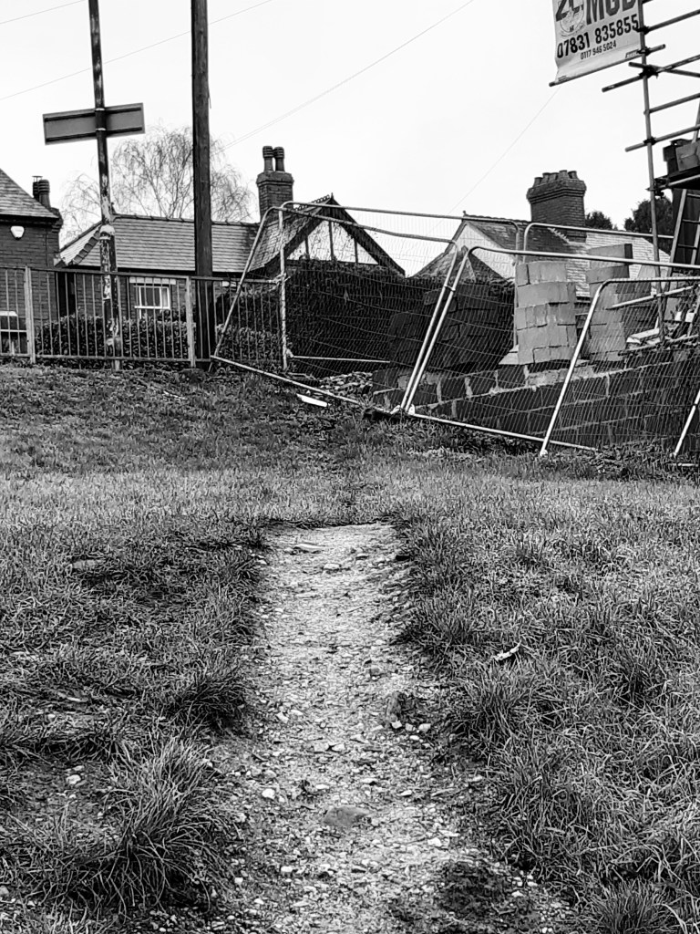 I walk on, and as I walk, I become acutely conscious of the crossings I am making, and also of interference. Enabling and disabling, travelling, yet having to flex and adjust a route. I cross the A46 at the site of an old toll house; I follow an old track down and cross a balustrade bridge; I cross the Stroudwater canal and then the A419, and then the main London to Gloucester railway line. I am prevented from following a popular desire path by the new erection of some Harris fences surrounding a building development. It is needless, and annoying, though technically legal, and I use this path so unconsciously that I stand there for a moment, unable to make sense of what I’m seeing, temporarily frozen. Be aware. Bad static.