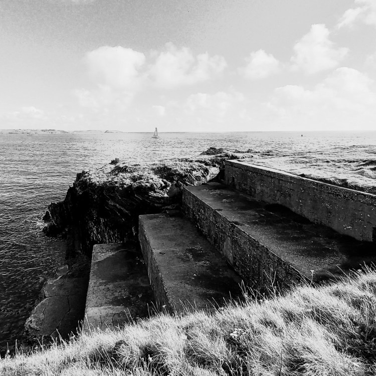 Now a nature reserve, Penlee was another Victorian defence outpost There are several steep concrete steps rising from the sea to the point. I think ‘ziggurat’ even though it can’t be so, and it a structure built in the 1880s to enable a team of 80 horses to pull a cannon from the sea to be mounted on the point. Another folly – on first firing the cannon split it’s concrete footing, rendering the whole thing unusable. This little stretch of coast is full of white elephants, it seems.