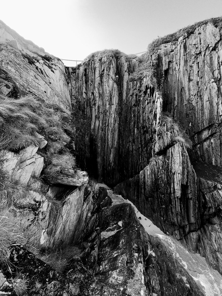 The geology here is fascinating – sharp spines of serrated grey shot through with white crystal quartz thrust themselves up into the sky and march out into the waters in oddly uniform, regimented lines. Cornish is a very site-specific, land-based, descriptive language, and the name Penlee comes from the Cornish ‘Penn Legh‘ which means ‘stone slab headland’.