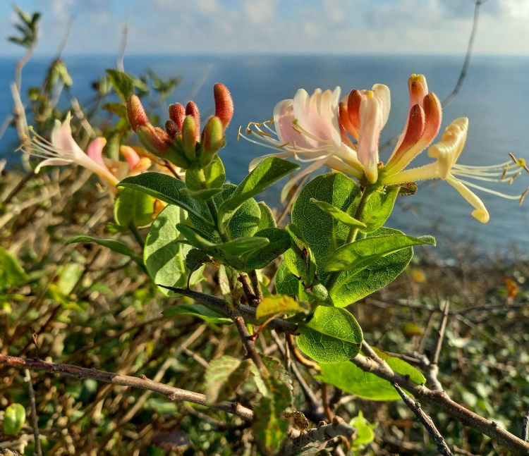 Still, it is a reminder of how little you really need to walk a few miles on a good path on a nice day and my broken boots serve just fine. I walk at pace, as I need to. get there and back and then back to the car, to drive to another cousin who is kindly putting me up in Ivybridge. Not so fast though, that I can’t stop to appreciate a single sprig of honeysuckle amongst the ferns. The gorse, still in flower, has lost its creamy cocoa butter summer scenl but the honeysuckle is still full of nectar. I bury my face in it, can’t get enough of the smell.